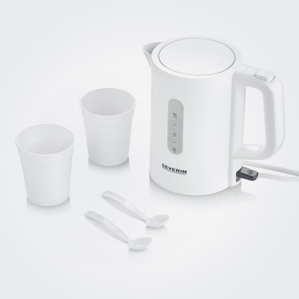 Der Wasserkocher WK3462 von Severin ist ein idealer Begleiter für Campingausflüge und Reisen, da er mit seiner umschaltbaren Spannung von 115 / 230 Volt an nahezu jeder Steckdose betrieben werden kann.