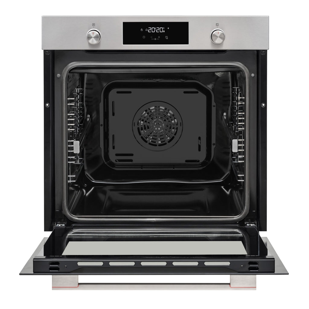 Das moderne Inox-Design mit versenkbaren Knebeln, silberfarbenem Griff und LED-Display fügt sich harmonisch in jede Küche ein. Die herausnehmbare Innenglastür, seitliche Einhängegitter und ein Set Voll-Teleskopauszüge erhöhen die Bedienfreundlichkeit zusätzlich. Im Lieferumfang enthalten sind ein Gitterrost, ein Backblech sowie eine tiefe Fettpfanne. Mit einem Energieverbrauch von nur 0,79 kWh im Umluftbetrieb, einer Temperaturregelung von 50 bis 270 °C und kompakten Einbaumassen von 600 x 600 x 590 mm ist dieser Backofen eine leistungsstarke und stilvolle Lösung für moderne Haushalte.