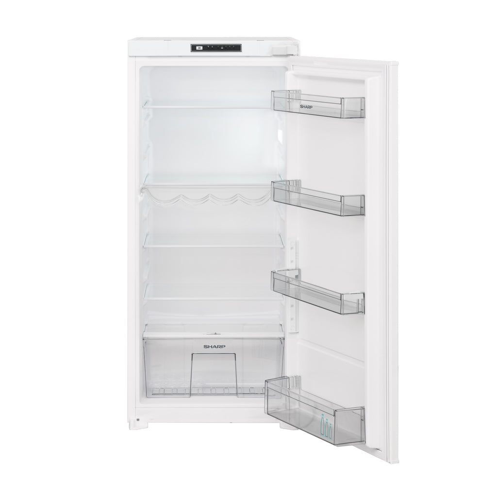 Der Sharp SJ-LD195E0XS-EU ist ein geräumiger Einbaukühlschrank für die 123er-Nische, der großzügigen Stauraum mit flexibler Integration und innovativen Funktionen zur optimalen Lebensmittelaufbewahrung verbindet.