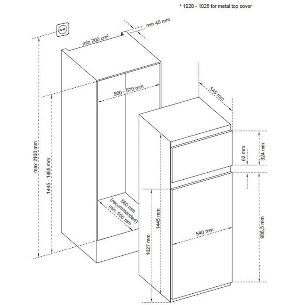 Mit kompakten Maßen von 540x545x1445 mm passt die Kühl-Gefrierkombination perfekt in jede 145er-Einbaunische und ist mit einer Festtürmontage ausgestattet, sodass sie sich harmonisch in Ihre Küchengestaltung einfügt.