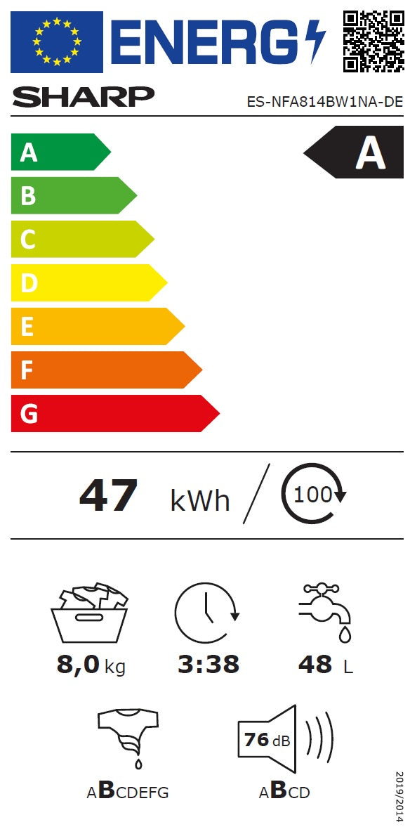 Die Waschmaschine ES-NFA814BW1NA-CH von Sharp vereint Effizienz, Leistung und Benutzerfreundlichkeit für eine herausragende Wascherfahrung.