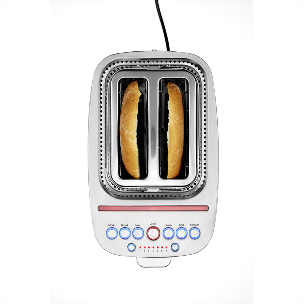 Der Toaster bietet extra breite Toast-Einschübe. So wärmen Sie einfach Bagels und englische Muffins auf. Der Sandwich-Toaster hat eine spezielle Funktion für Bagels: dabei sind nur die inneren Heizelemente aktiv. Das macht Ihren Bagel innen besonders knusprig und aussen bleibt er weich.