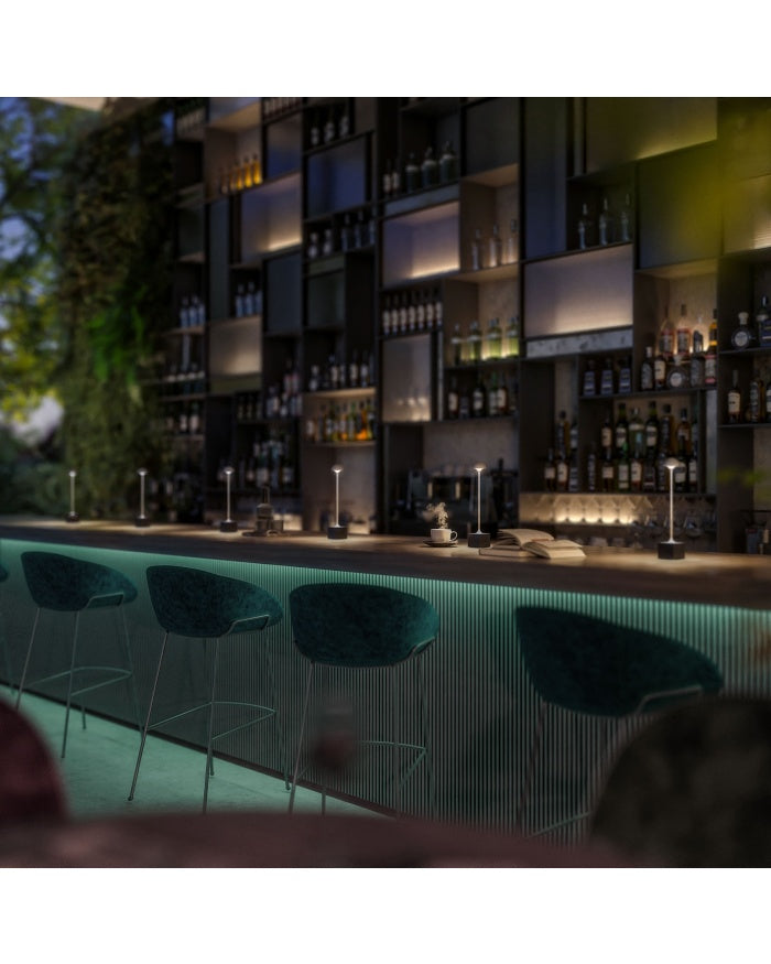 Die Tischleuchte FLORA aus hochwertigen Aluminium und elegantem, klarem Design bietet vielseitige Einsatzmöglichkeiten für den Innen- und Außenbereich. Ob in einem Restaurant oder einem Abendessen auf der Terrasse – die Outdoortischleuchte mit Touch-Dimmer sorgt jederzeit für ein perfektes Ambiente bei minimalen Platzbedarf! Mit dem magnetischen Ladekabel lässt sich die FLORA jederzeit ganz bequem aufladen. Der Akku der Leuchte hält bei einer vollen Ladung max. 88 Stunden.