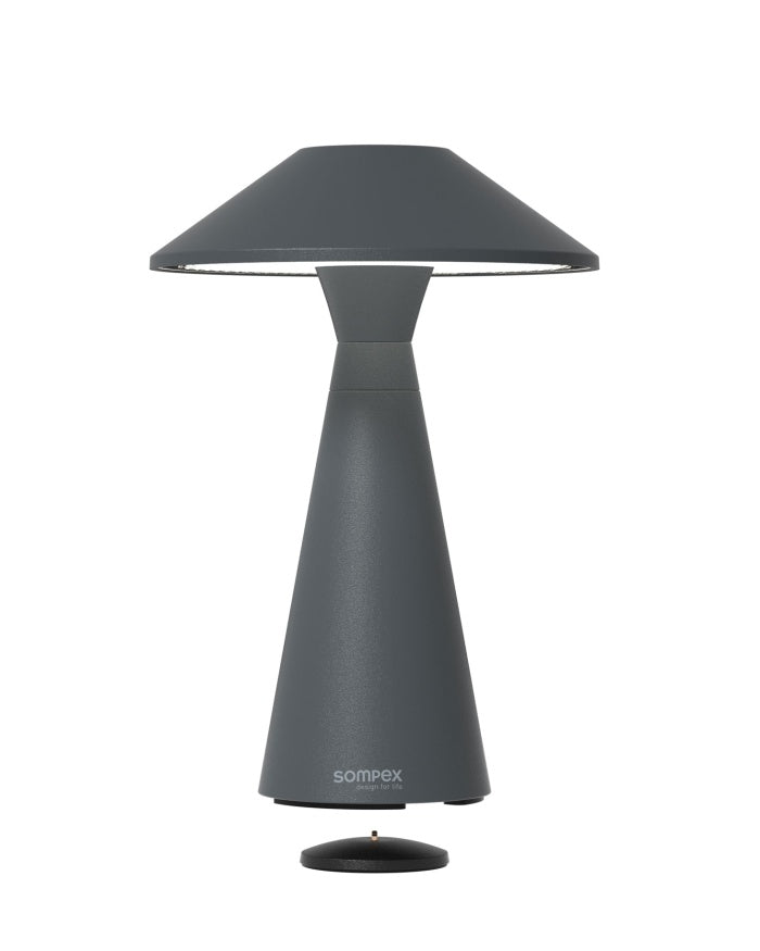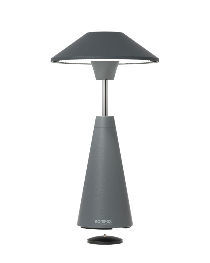 Nichts geht über eine entspannte Runde lesen am Abend! Die wird noch schöner, wenn die Akkuleuchte MOVE dabei sanftes Licht schenkt. Doch auch bei vielen anderen Gelegenheiten macht dieses edle Wohnaccessoire eine gute Figur: Sie lässt sich leicht transportieren, da es kein Stromkabel braucht, und ist dank IP65 in Innenräumen wie auf Außenflächen einzusetzen. Dafür sorgt der Betrieb per Akku mit einer Laufzeit von zehn bis 82 Stunden. Eine Ladestation ist im Lieferumfang einbegriffen. Verschiedene praktische Features machen die MOVE zu einer Tischleuchte, die man nicht mehr missen will. Sie ist über den Touch-Sensor stufenlos dimmbar. Mit einem leichten Dreh am Sockelring kann die Arretierung des Sockels gelöst und die Höhe des Schirmes nach Belieben eingestellt werden. Zwei Farbtemperaturen im Warmweißbereich schenken stets angenehmes Licht. Die aparte und moderne Form der Tischleuchte MOVE mit konischem Sockel und flachem runden Schirm ist aus Aluminium gefertigt. Ladestation inklusive.