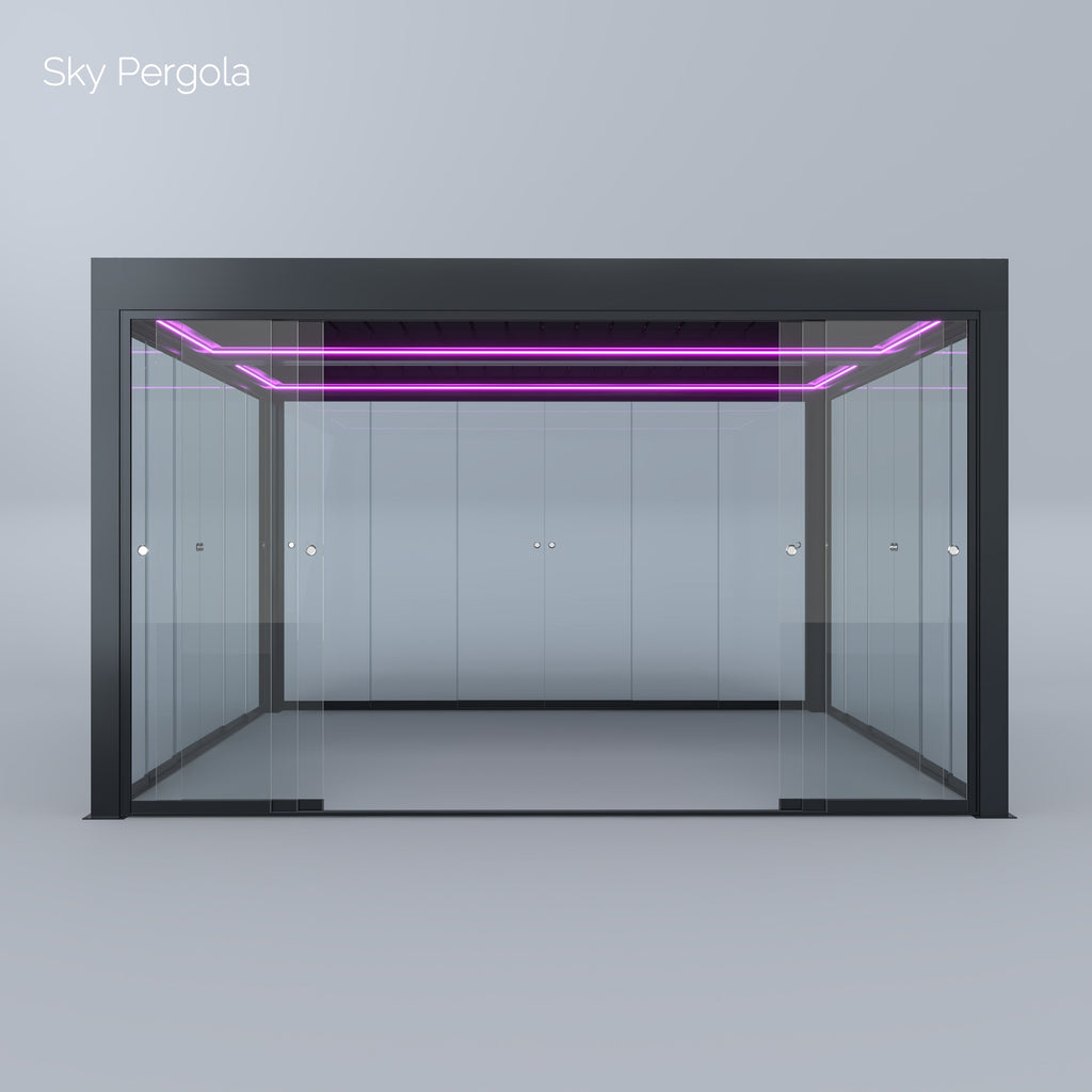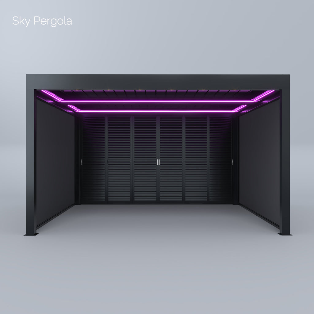 Spa Solutions Sky Pergola SkyGrand Master Aluminium Pergola LED 5m x 5m motorisiert Wandmontage