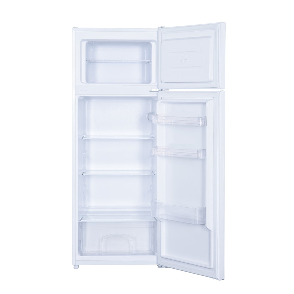 Der Kühlschrank mit Gefrierteil GK3581-1 in weiss von der Marke SPC bietet ein Nettovolumen von insgesamt 206 Litern, wovon der Kühlschrank ein Volumen von 169 Litern und der Gefrierschrank ein Volumen von 37 Litern hat.