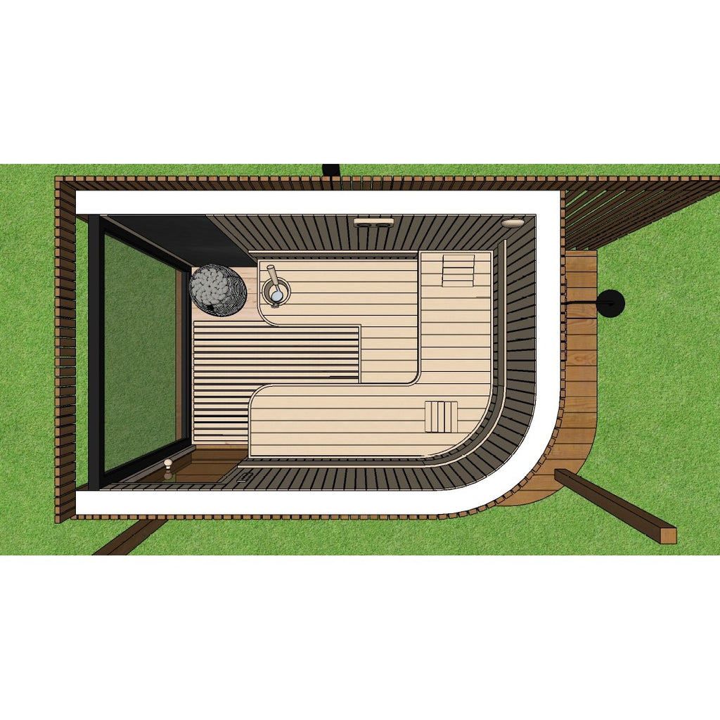 Die Gartensauna Alto besticht durch ihre moderne Gestaltung und hochwertige Ausstattung, die ein luxuriöses Saunaerlebnis im eigenen Garten ermöglicht.