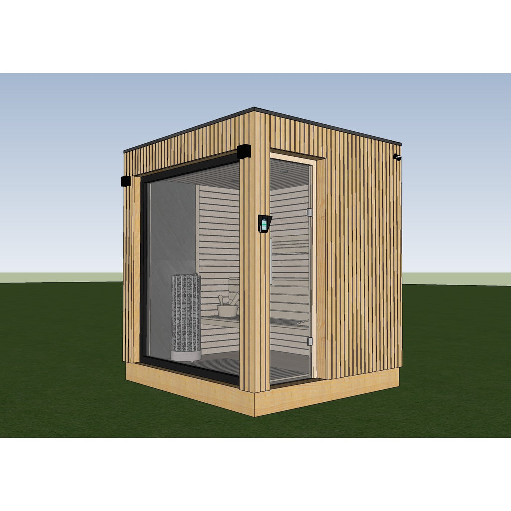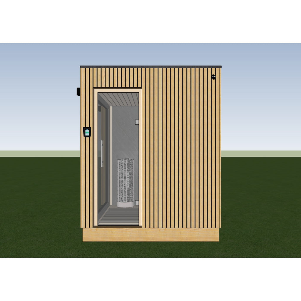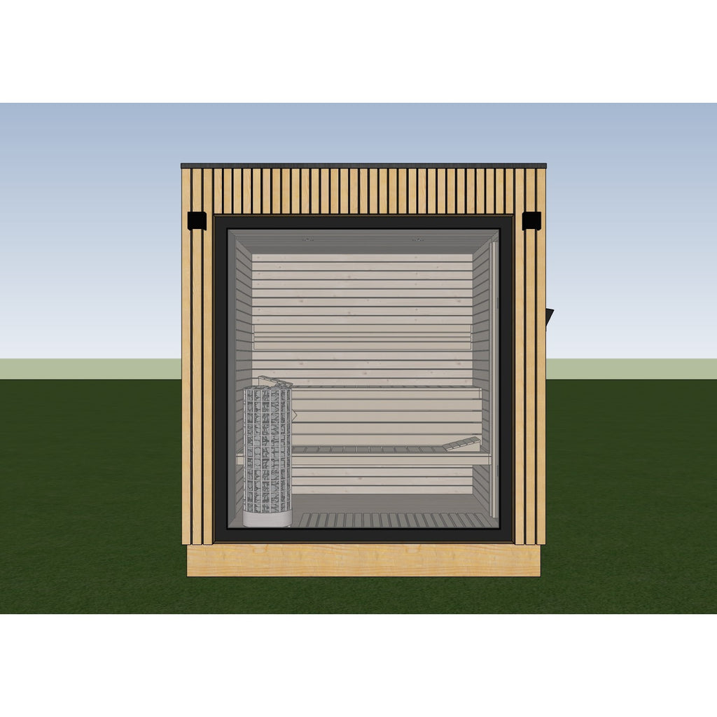 Die Gartensauna Alvi beeindruckt nicht nur mit ihrem modernen Design, sondern auch mit durchdachten Details. Die Fassade besteht aus rechteckigen Lamellenbrettern, die nicht nur für eine ansprechende Optik sorgen, sondern auch mit einer speziellen Imprägnierung behandelt wurden. Diese Imprägnierung gewährleistet nicht nur einen effektiven Schutz vor Witterungseinflüssen, sondern trägt auch zur Langlebigkeit der Sauna bei.