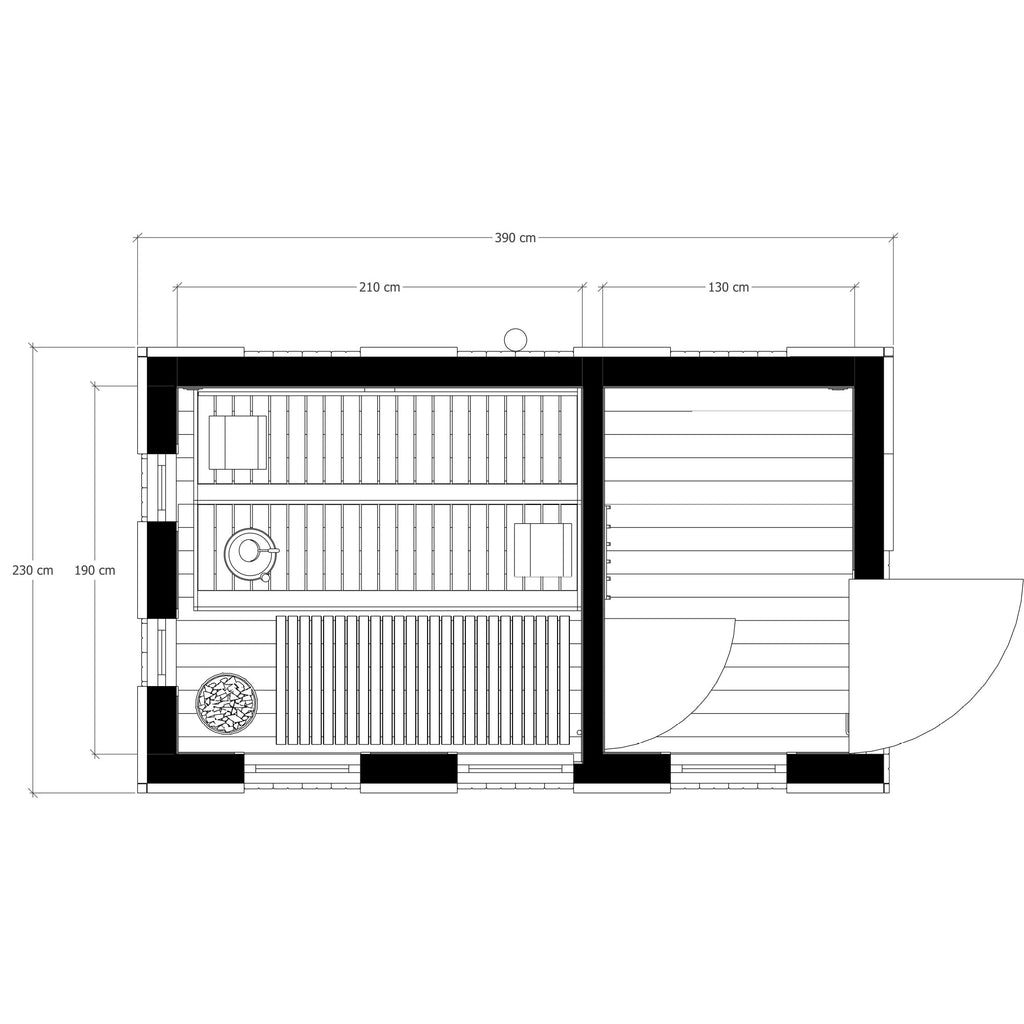 Der Innenraum der Gartensauna Berg bietet alles, was das Saunaherz begehrt. Neben einer finnischen Sauna verfügt das Haus über einen Vorraum, der auch mit einer Duschmöglichkeit ausgestattet werden kann. So können Sie sich nach einem ausgiebigen Saunagang direkt abkühlen und erfrischen.