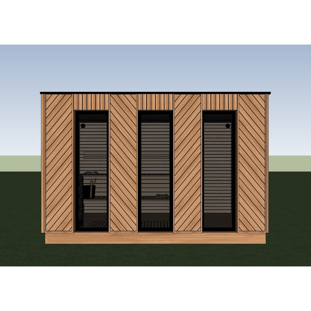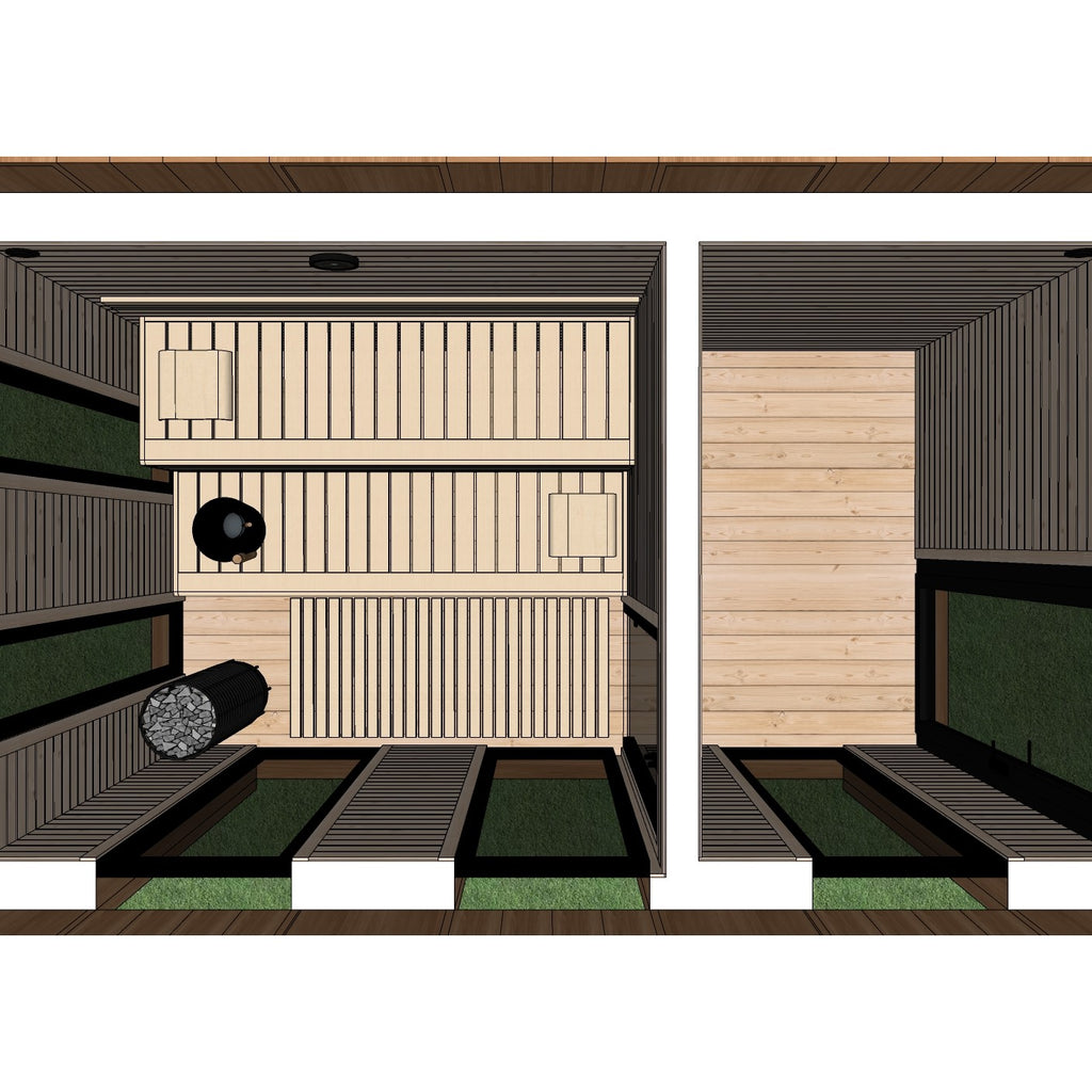 • Kombination aus finnischer Sauna und Vorraum mit Duschmöglichkeit