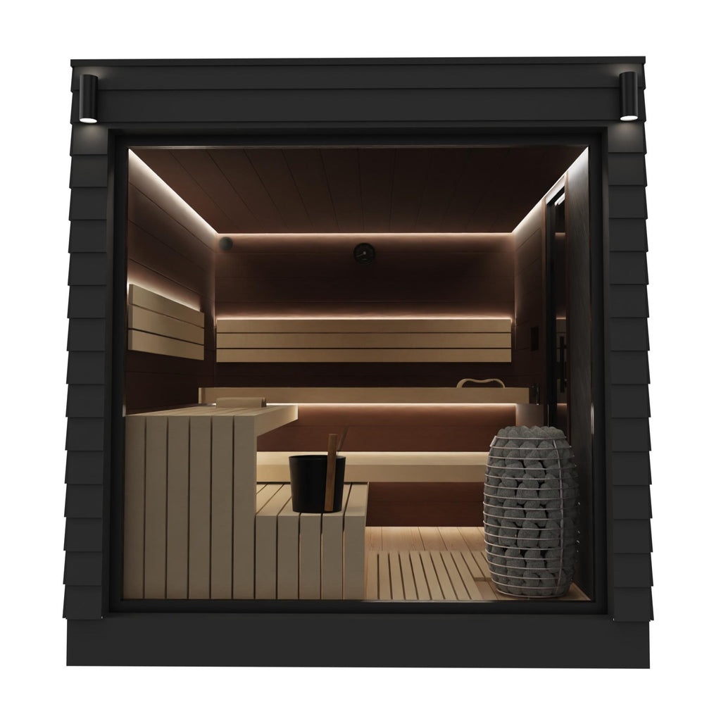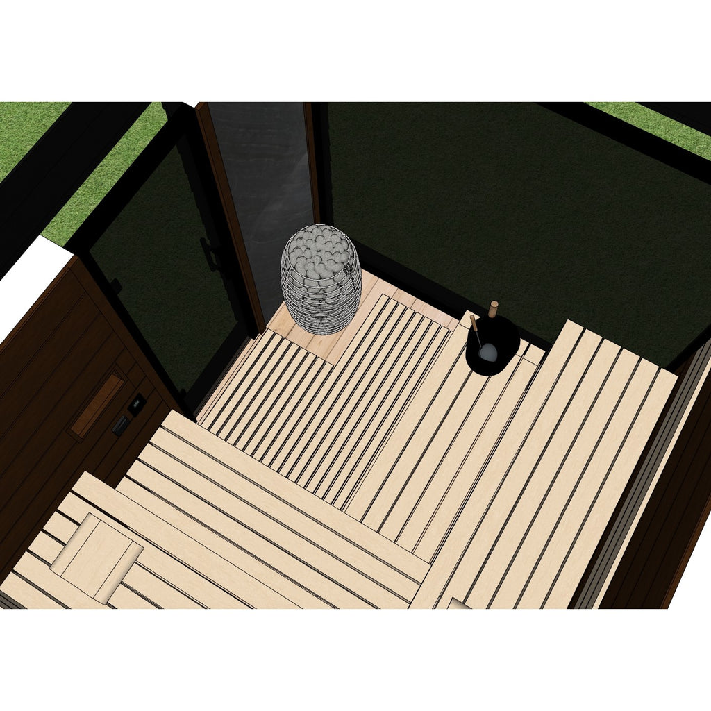 Das Highlight der Bjorn Sauna ist das getönte, vorgespannte Glas, das für eine helle und einladende Atmosphäre im Inneren sorgt. Dieses hochwertige Glas ermöglicht eine optimale Lichtdurchflutung und schafft eine Verbindung zur umgebenden Natur.